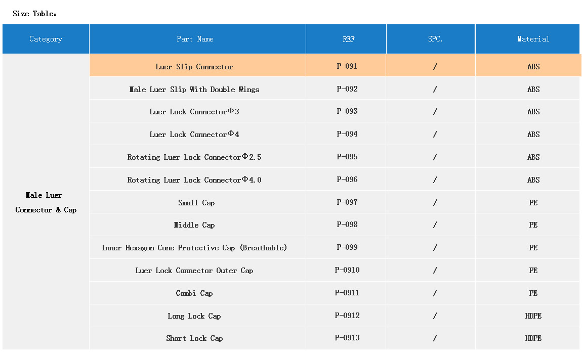 Product Name:JN Components  【Male Luer Connector & Cap】REF P-091