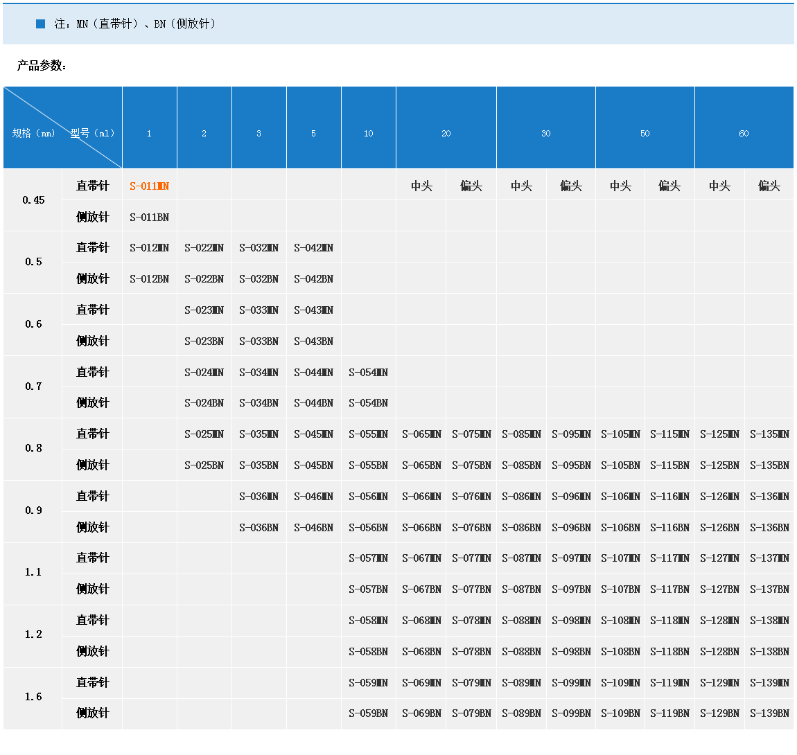 產(chǎn)品名稱:直插帶針  REF-S-011MN-1ML