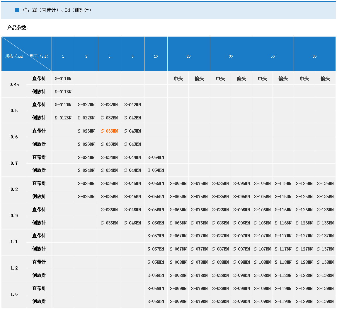 產品名稱:直插帶針  REF-S-033MN-3ML