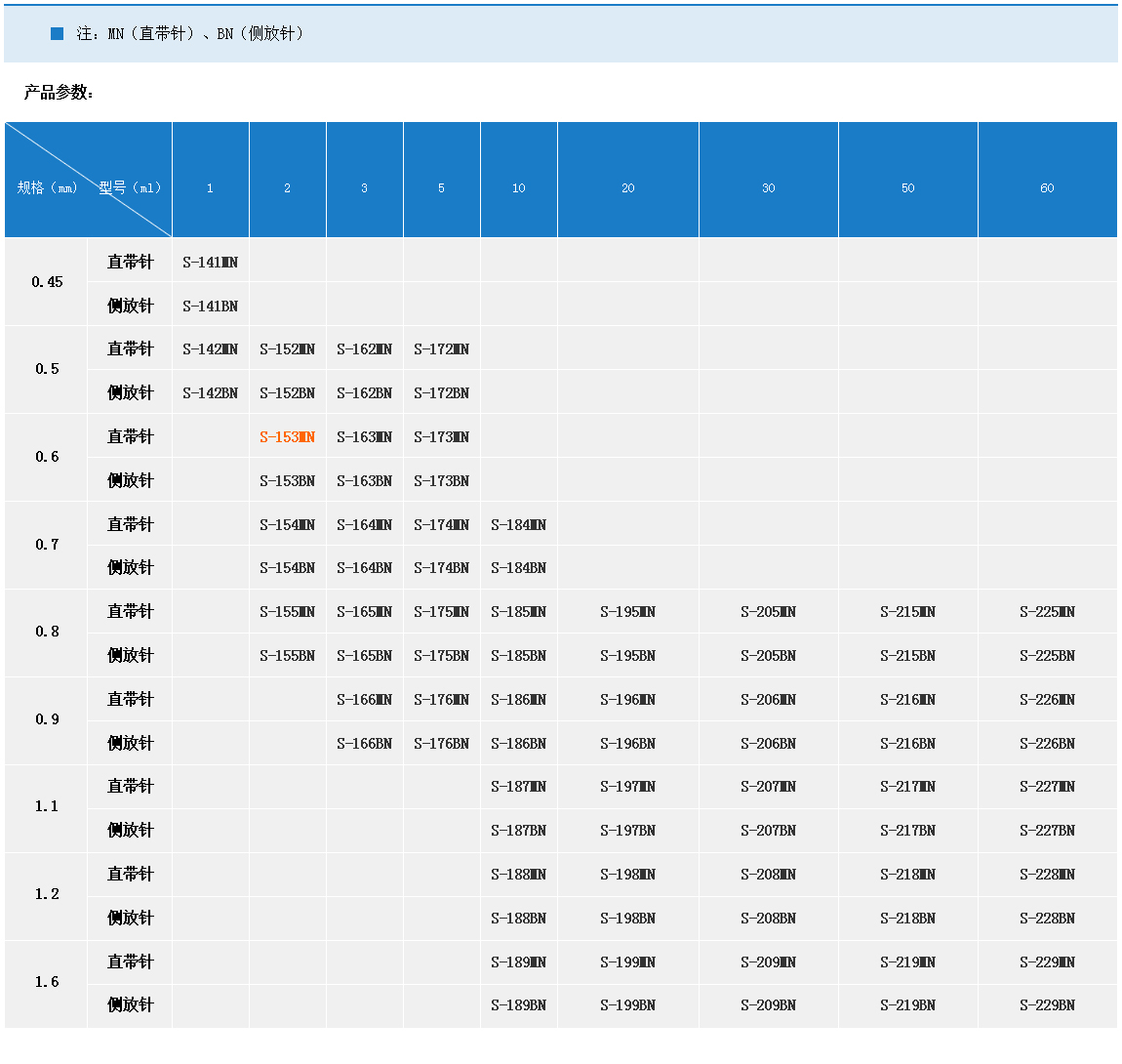 產(chǎn)品名稱:螺口帶針  REF-S-153MN-2ML