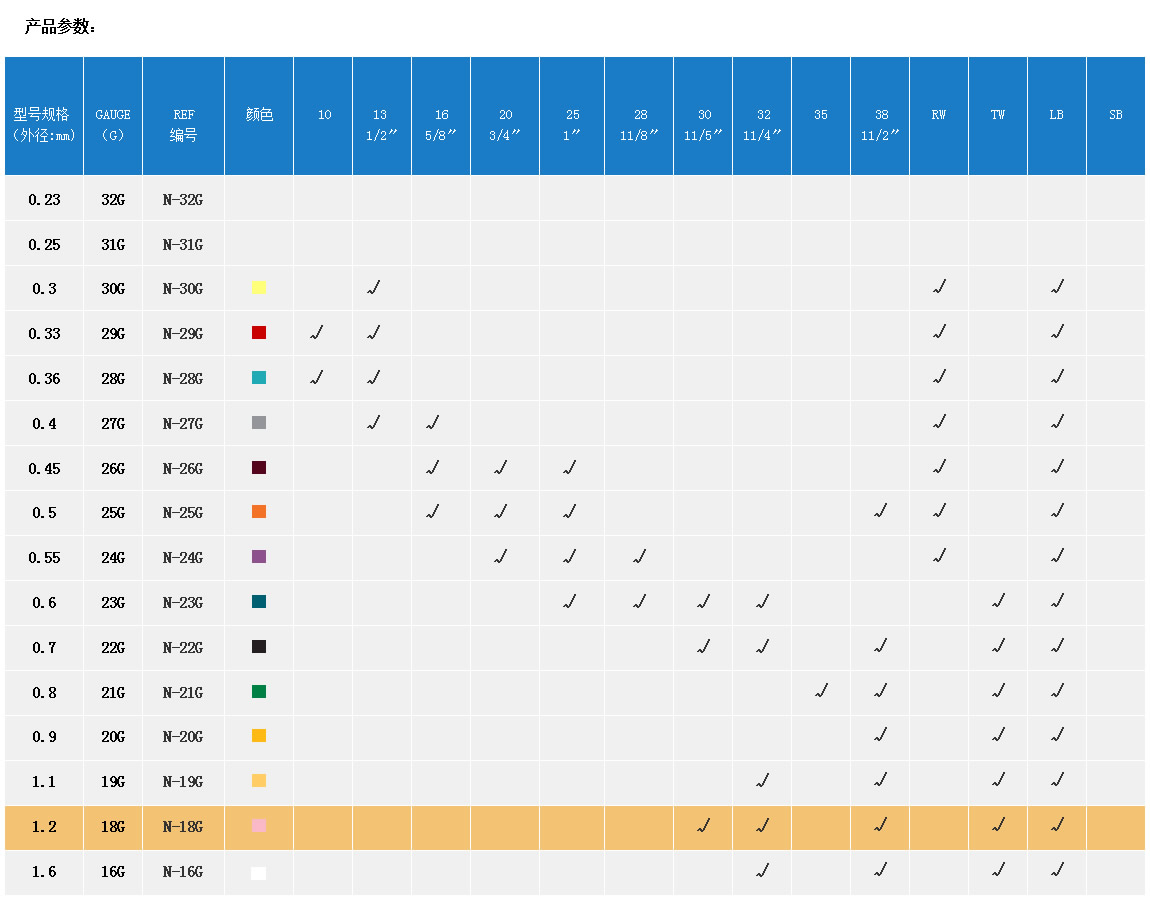 產品名稱:注射針  REF-N-18G-1.2MM8