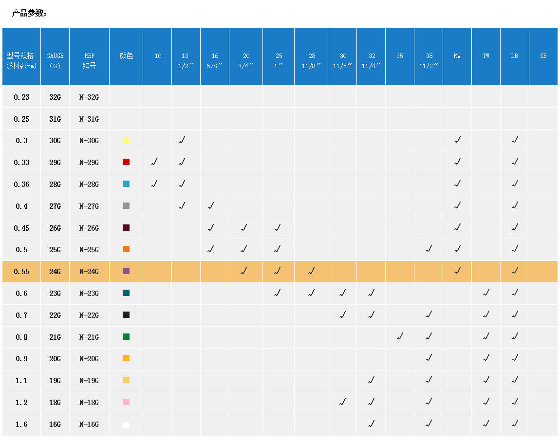 產(chǎn)品名稱:注射針  REF-N-24G-0.55MM