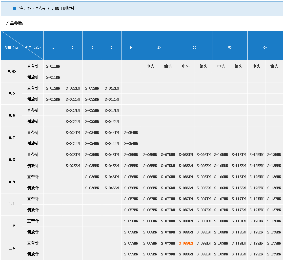 產品名稱:直插帶針  REF-S-089MN-30ML