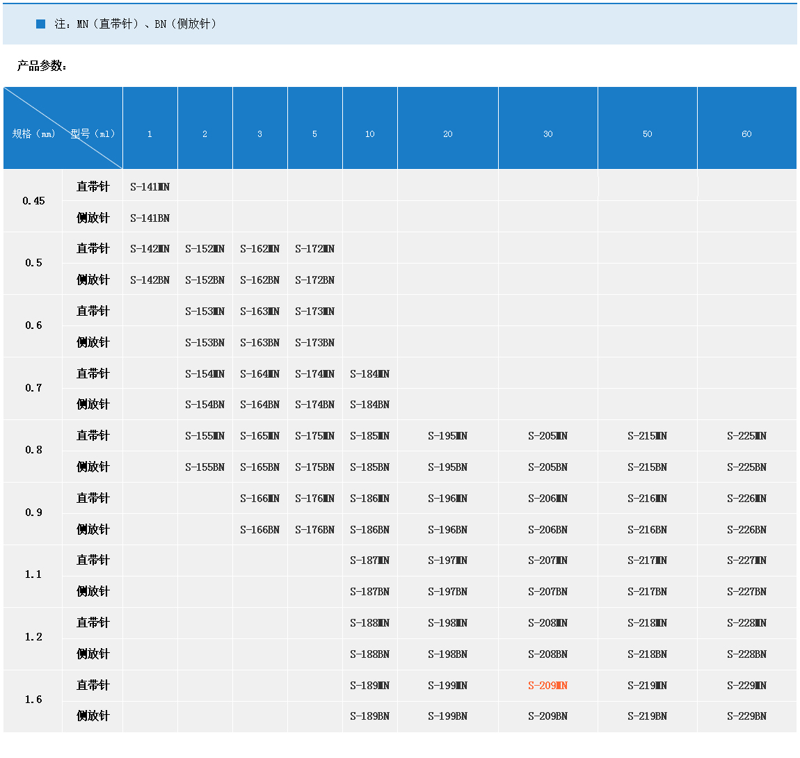 產品名稱:螺口帶針  REF S-209MN 30ML