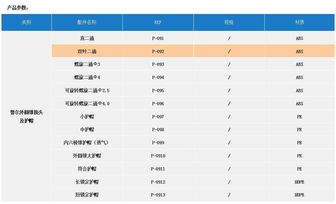產(chǎn)品名稱:配件  【魯爾外圓錐接頭及護帽】REF P-092