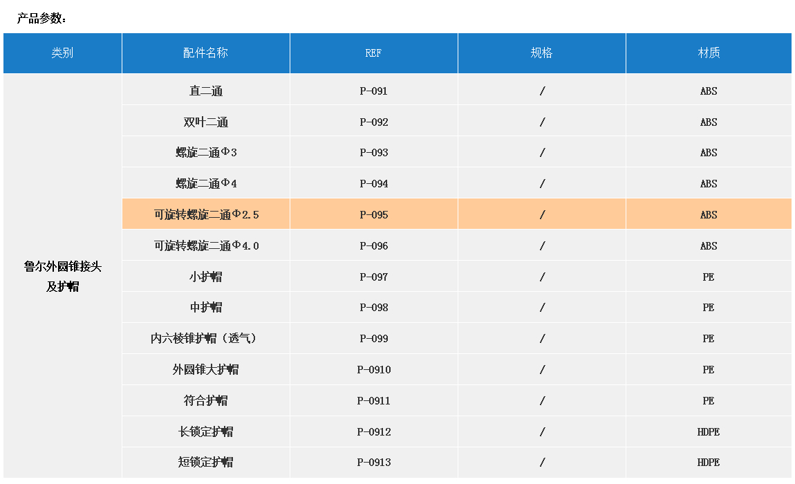 產品名稱:配件  【魯爾外圓錐接頭及護帽】REF P-095