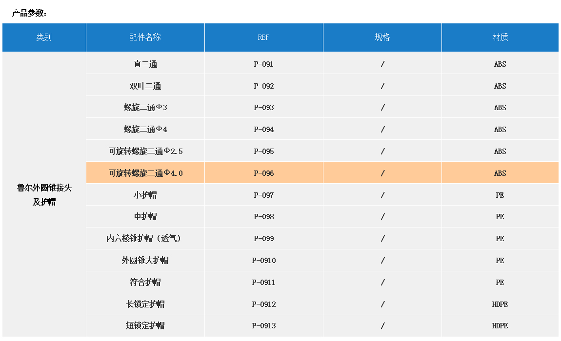 產品名稱:配件  【魯爾外圓錐接頭及護帽】REF P-096