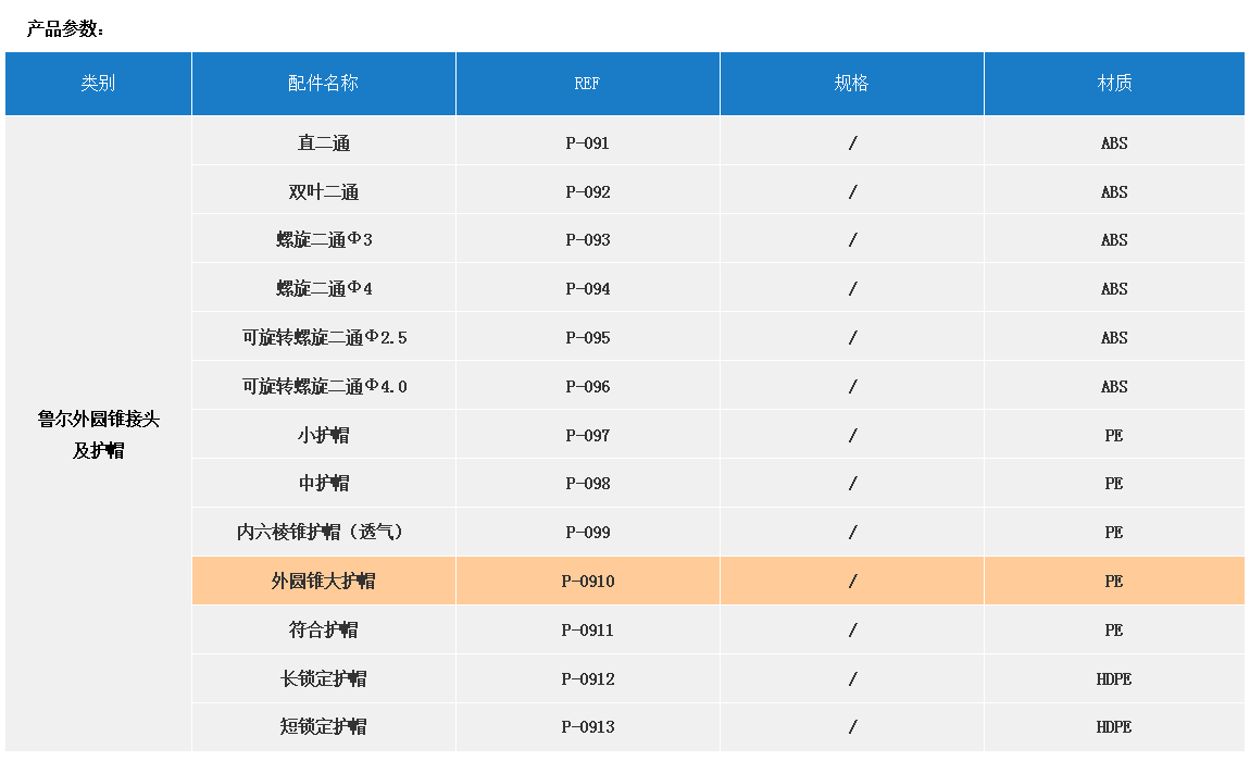 產(chǎn)品名稱:配件  【魯爾外圓錐接頭及護(hù)帽】REF P-0910