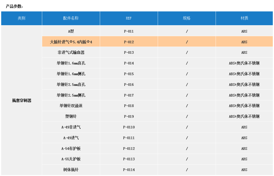 產品名稱:配件  【瓶塞穿刺器】REF P-012