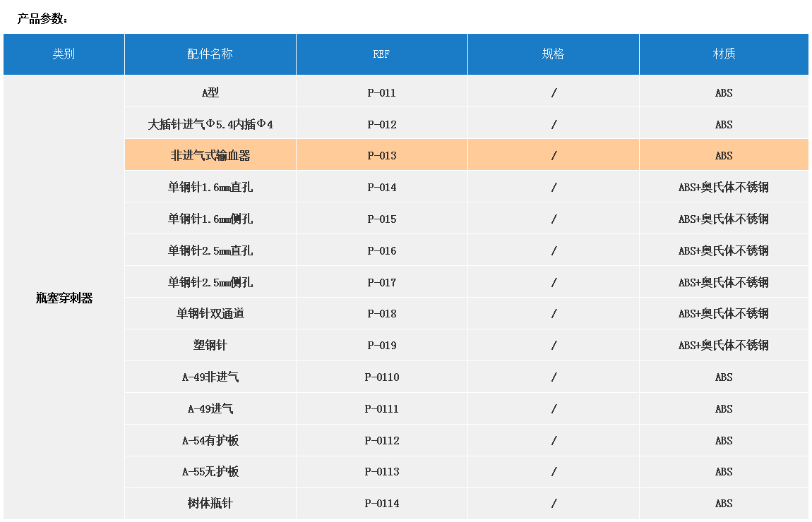 產(chǎn)品名稱:配件  【瓶塞穿刺器】REF P-013