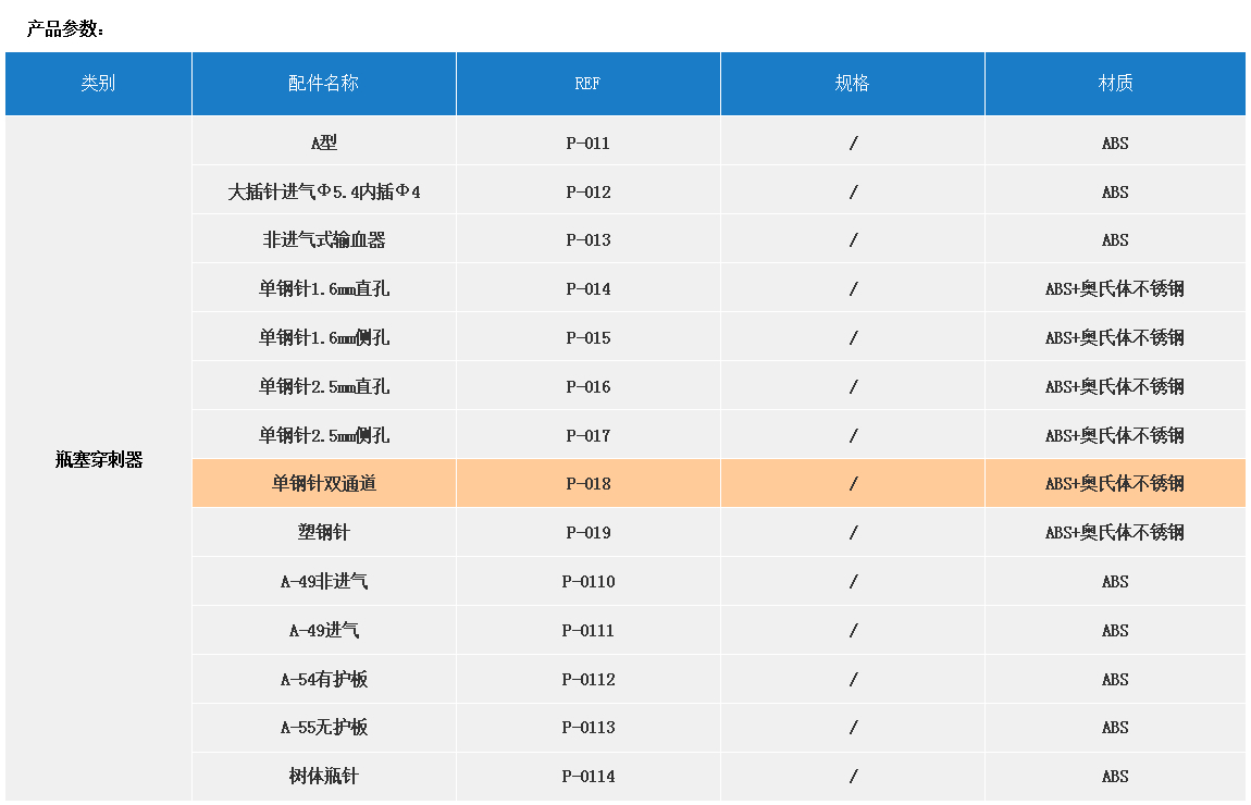 產品名稱:配件  【瓶塞穿刺器】REF P-018