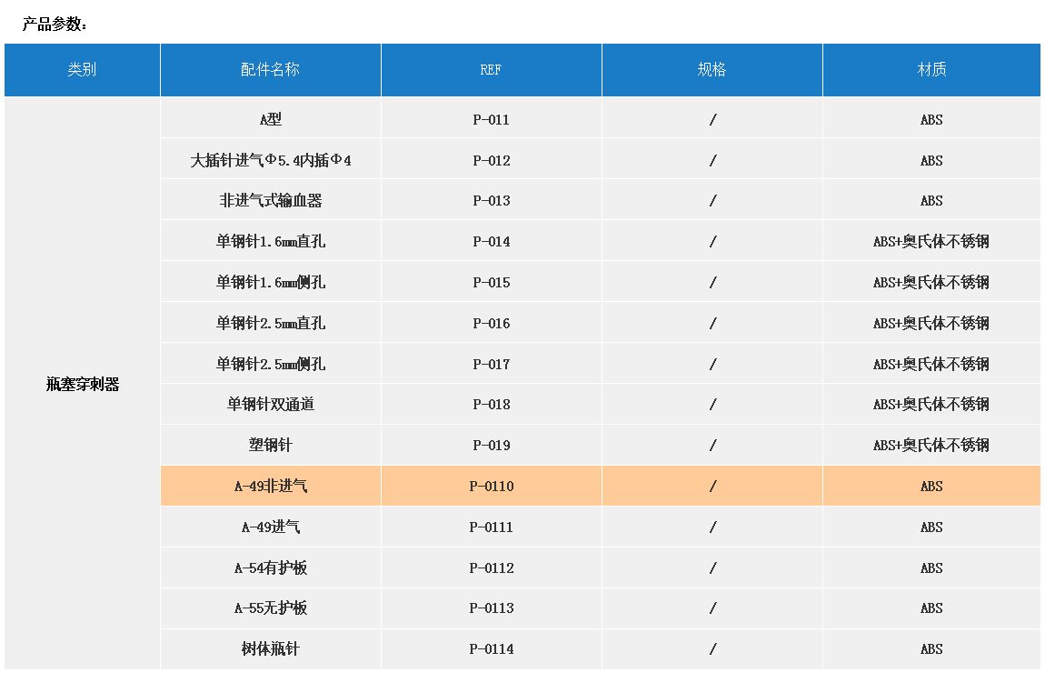 產品名稱:配件  【瓶塞穿刺器】REF P-0110
